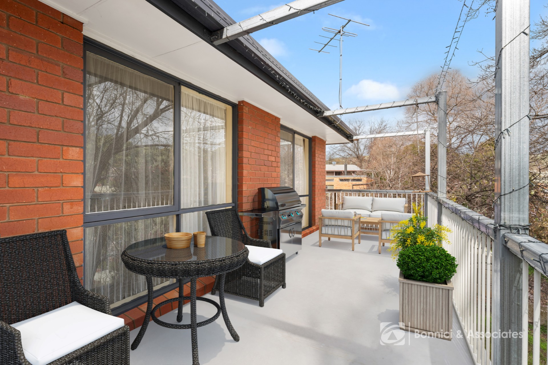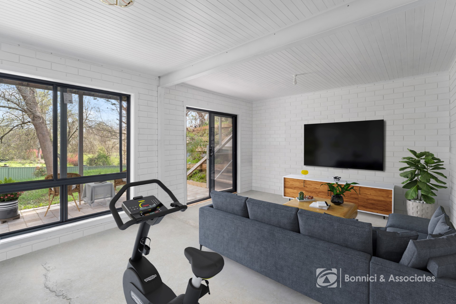 Downstairs, a versatile bonus room provides additional flexibility. Whether you need a rumpus room, home gym, office, or potential third bedroom, this space can accommodate your needs and is conveniently accessed via two sets of external stairs (one at the rear and one at the side of the home).